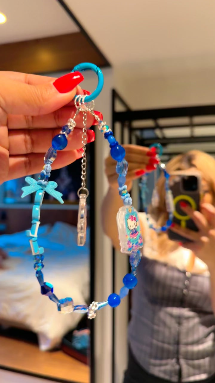 Kawaii Blue Beaded Phone Charm | “DOLL” Aesthetic Strap with Cute Charms